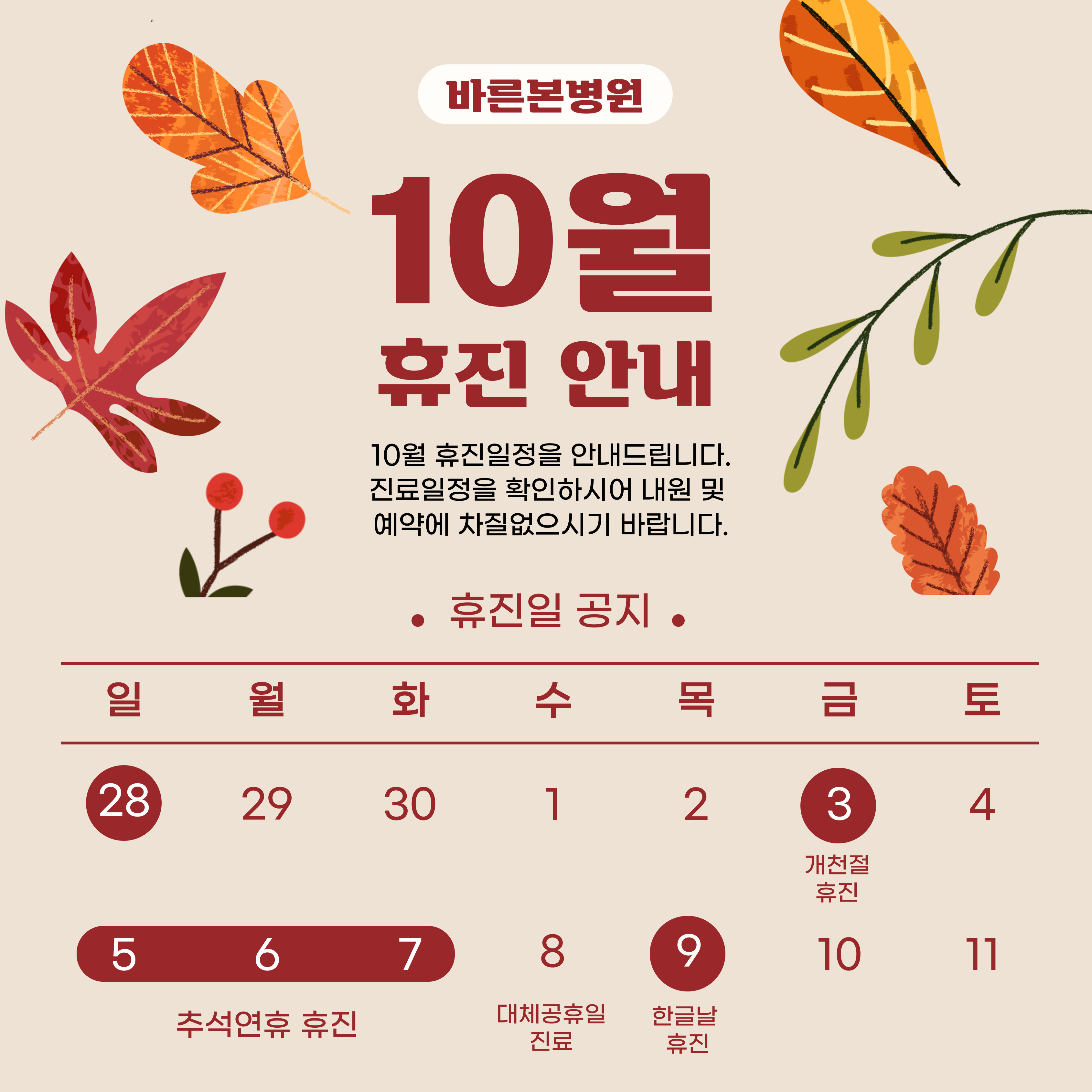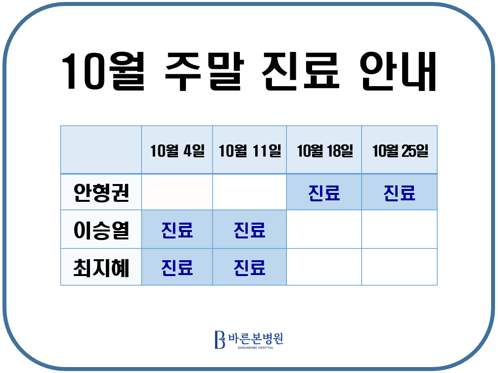 2025년 10월 휴진 및 주말 진료일정을 안내드립니다.