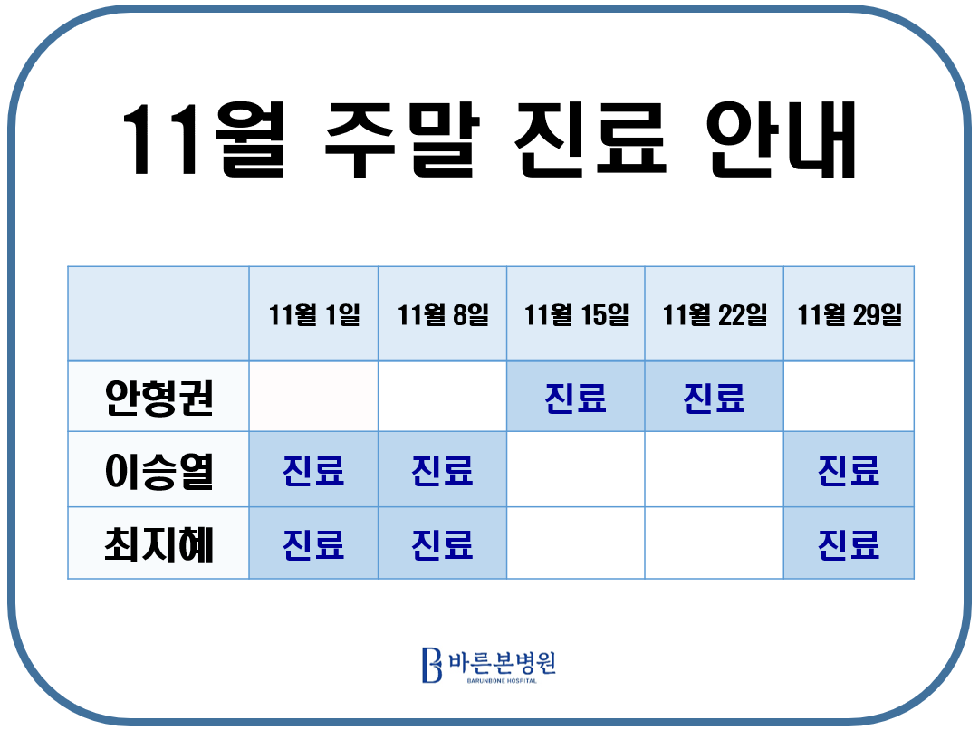 2025년 11월 주말 진료일정을 안내드립니다.
