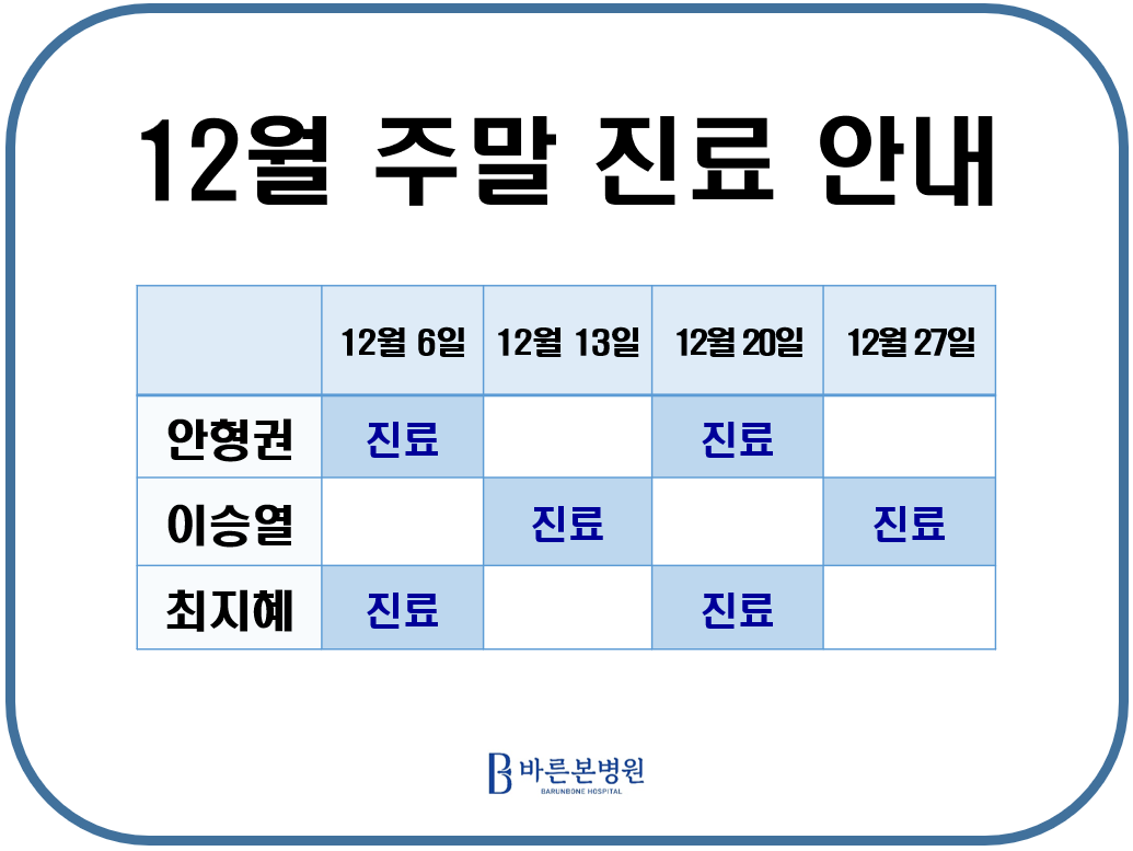 2025년 12월 휴진 및 주말 진료일정을 안내드립니다.
