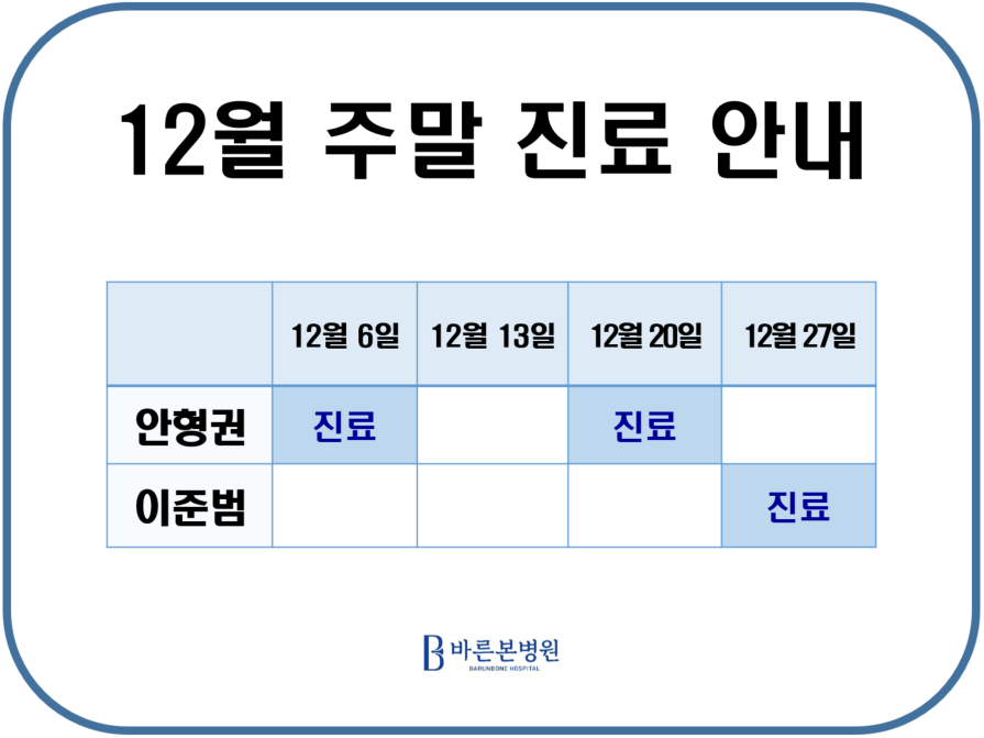 2025년 12월 휴진 및 주말 진료일정을 안내드립니다.